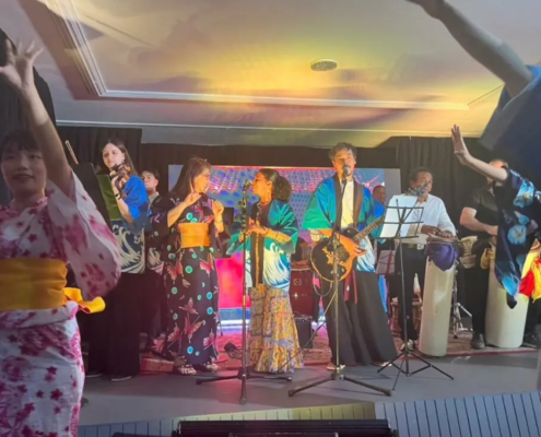 Las culturas japonesa y dominicana se combinaron en la presentación de la JICA RD Bon Band, con canciones como Merengue Bon Bon y Bachata Bon Bon y con colaboración especial de José Duluc y su banda que interpretaron las canciones Plátano Bon Bon y Palo Bon Bon.