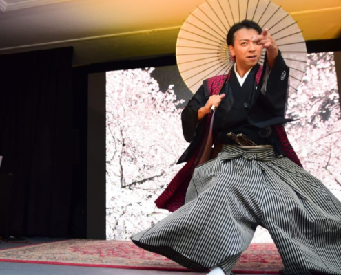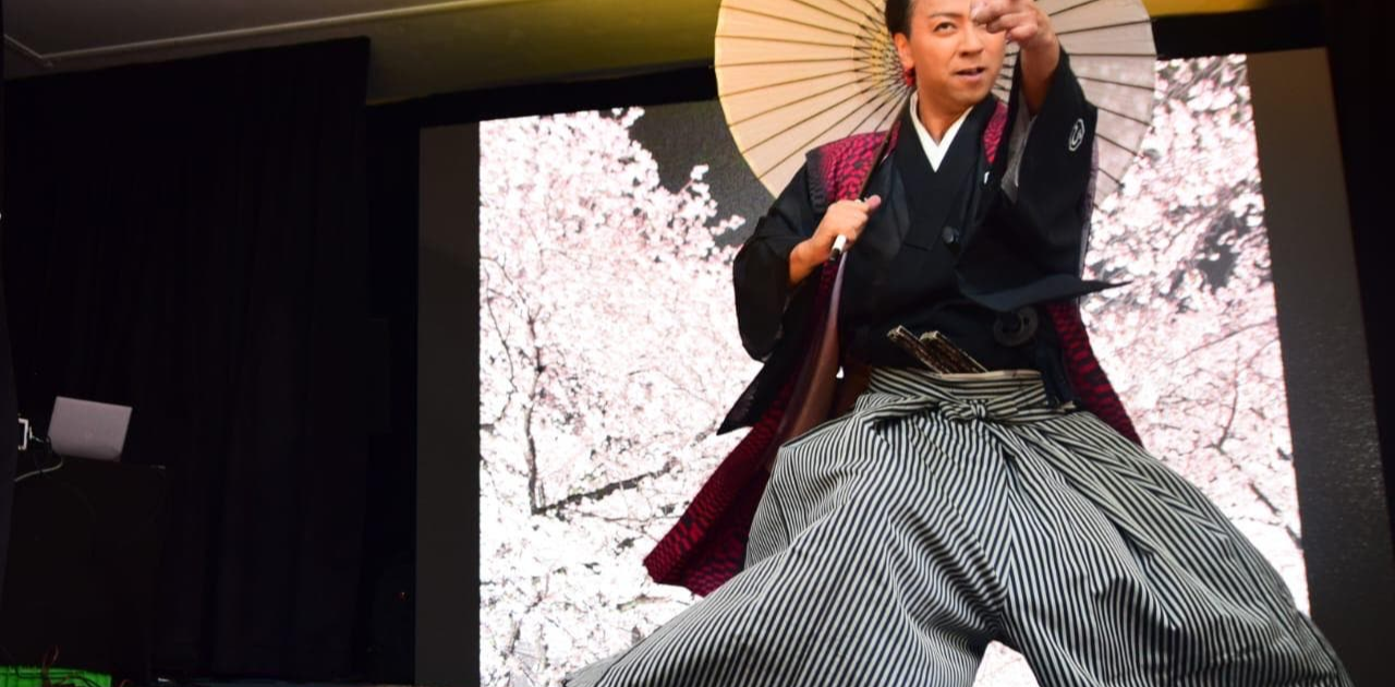 La iniciativa, que ha traído al país a varios representantes del arte y la cultura japonesa, contó esta vez con la presentación del bailarín y coreógrafo japonés Ukon Takafuji, conocido por su estilo único que combina la danza con espadas y la danza clásica japonesa y que fusiona, además, la cultura tradicional del japón con la música de baile moderna.
